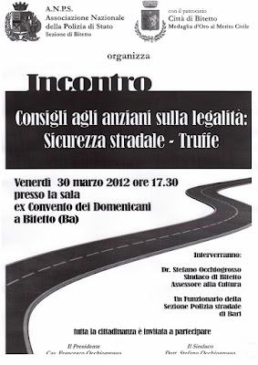 INCONTRO -"CONSIGLI AGLI ANZIANI SULLA LEGALITA' -SICUREZZA STRADALE - TRUFFE"